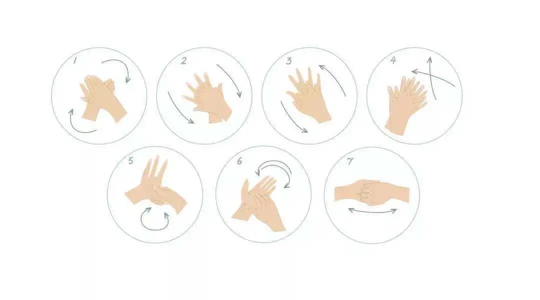 02保持手部衛生。接觸公共環(huán)境或公共用品后,用肥皂或洗手液,采用七步洗手法搓洗,流水沖凈。如沒(méi)有洗手設施,可使用含有70%至80%的酒精搓手液(免洗洗手液)潔凈雙手。